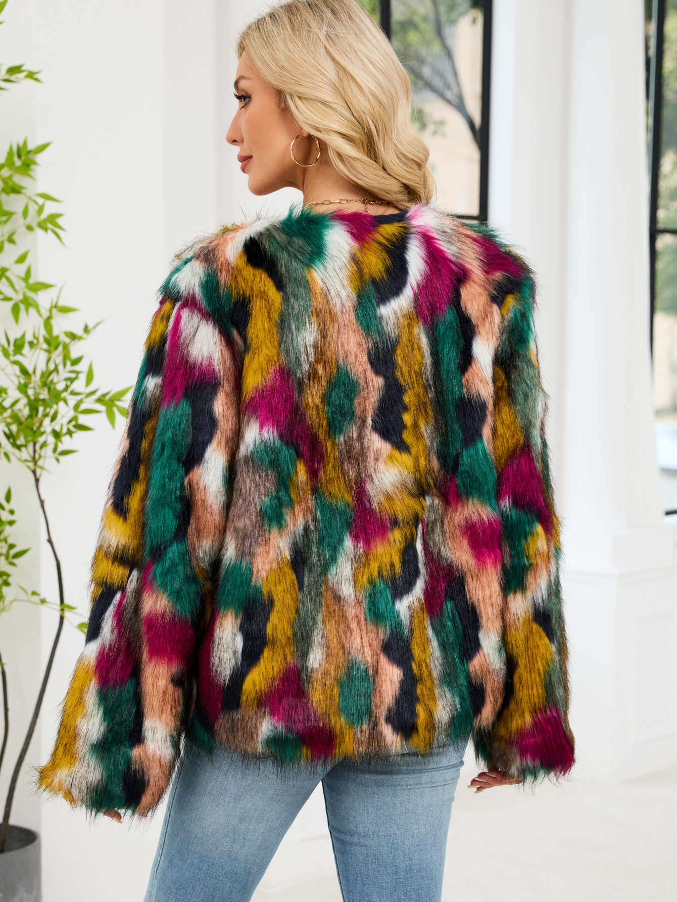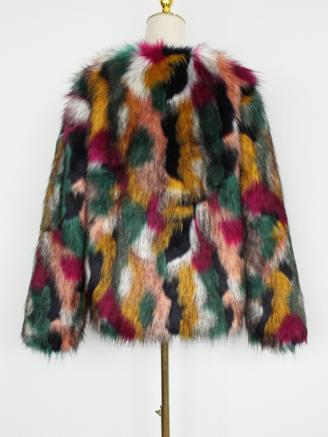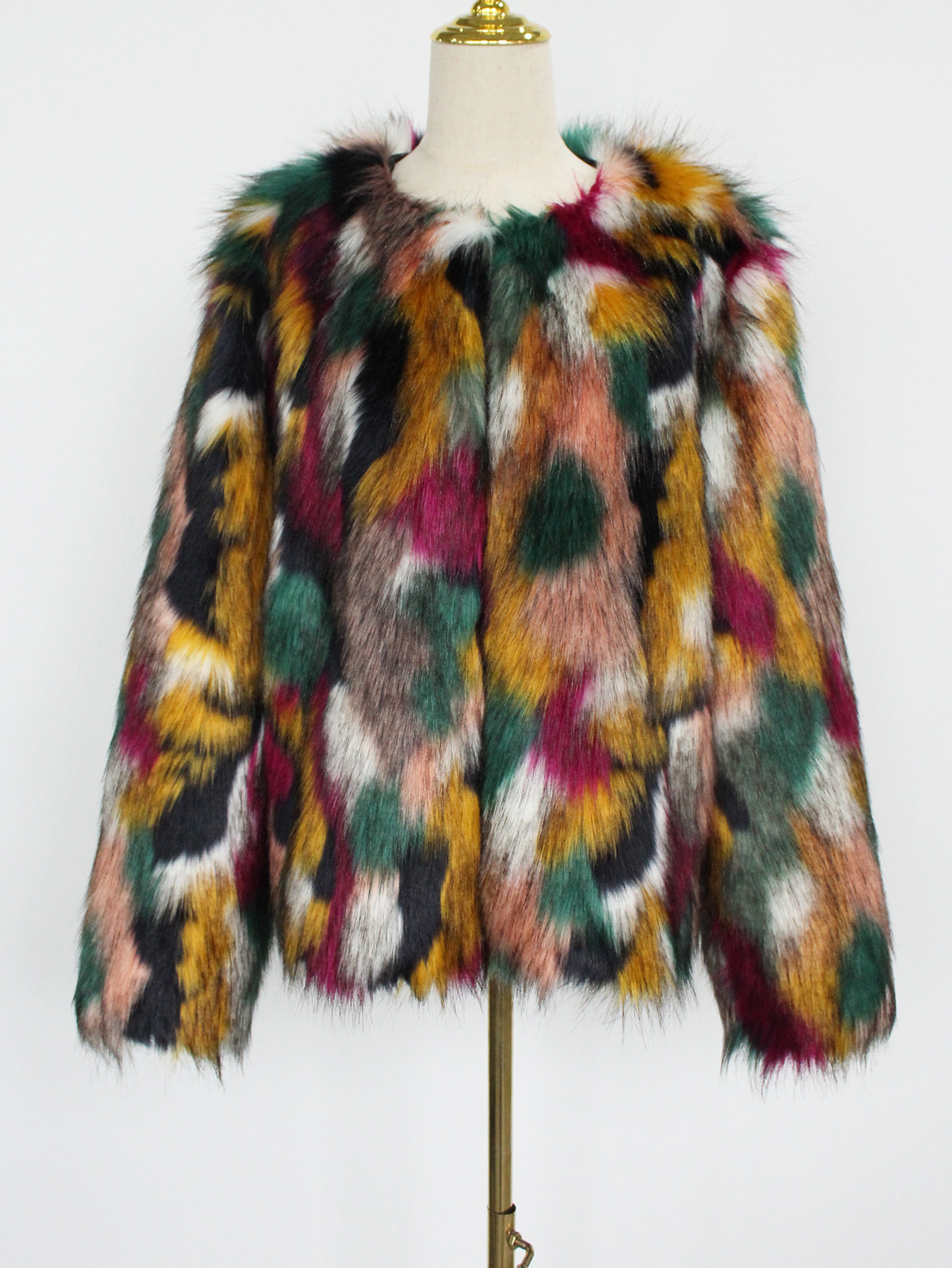 Colorful Fur Faux Fur Coat Short Long Sleeve Collarless Casual Women Winter Faux Fur Coat