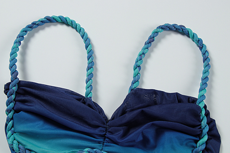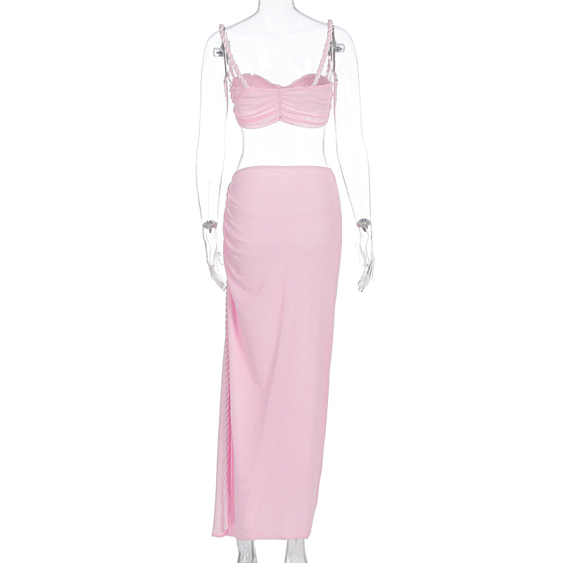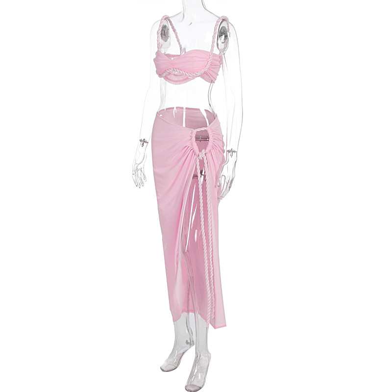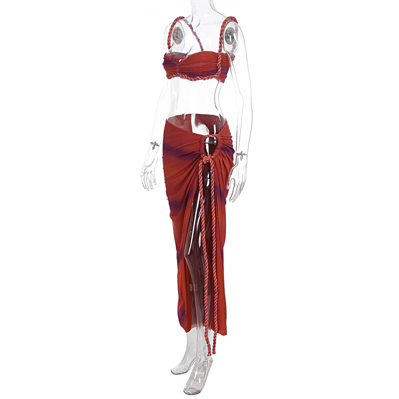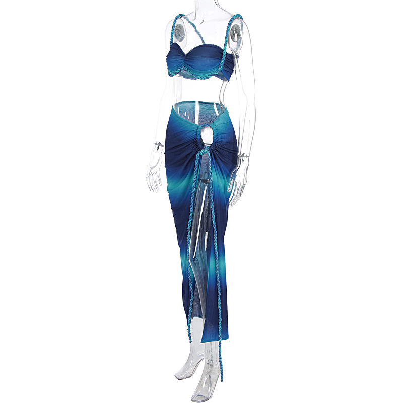 Sexy Beach Vacation Swimsuit Woven Halter Top Top Split Skirt Set