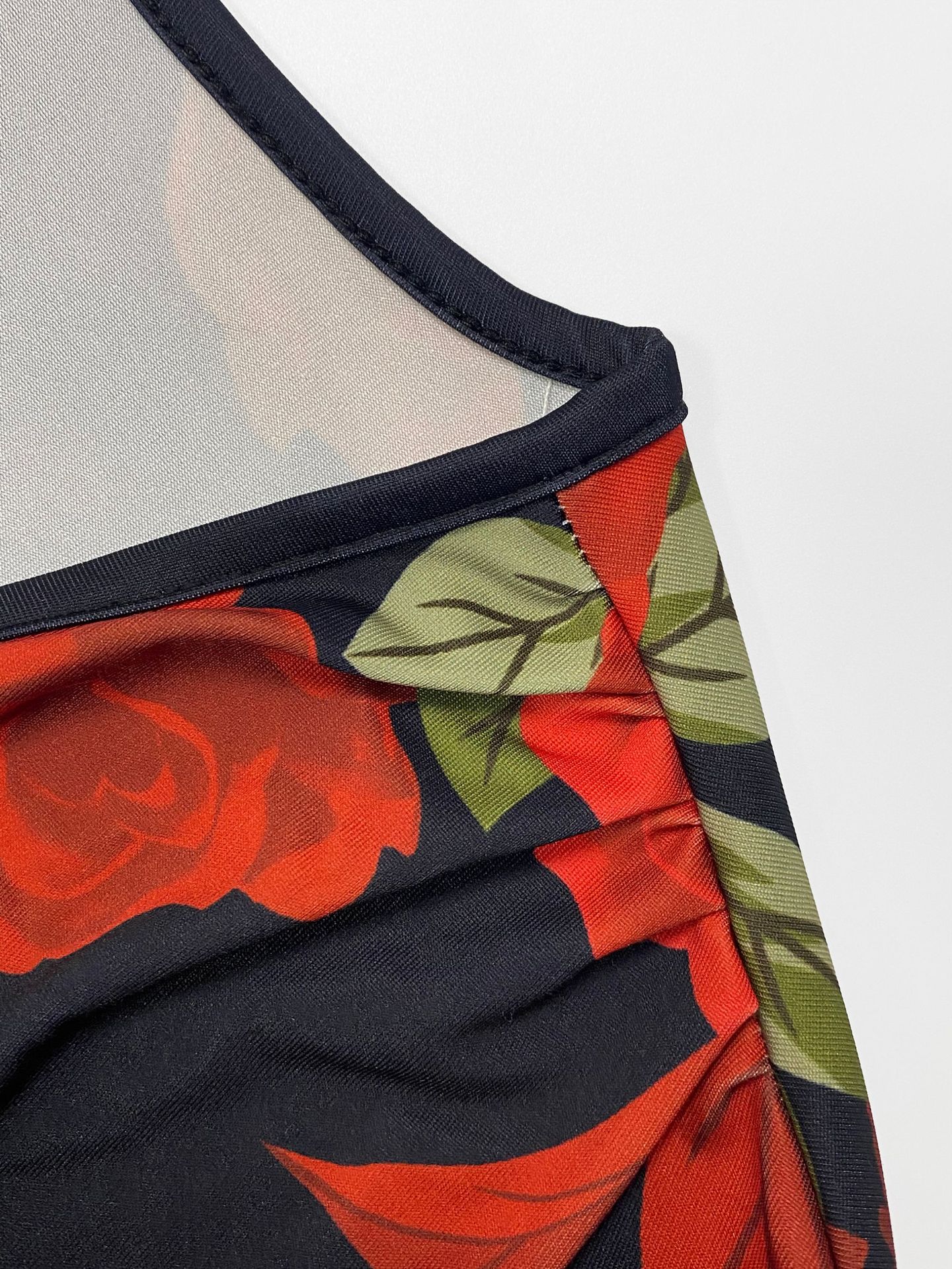 Plus Size Women Clothing Spring Printed Cross Collar Slit Waist Dress